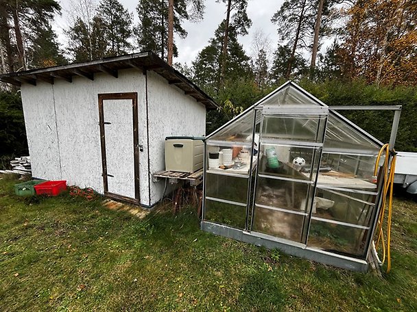 1-plans villa med källare om 120 m², beläget i utkant av villaområde i Hultsfred. Visst in- och utvändigt underhållsbehov. Öppen spis med insats, godkänd för eldning enligt uppgift. Inglasat uterum med klinkergolv och plasttak samt kyl/frys, bänkspis, vedspis, ej godkänd för eldning enligt uppgift. I källaren finns ett litet pentry med skåp, diskho och mindre kyl. Trädäck med mindre pool, ska fungera enligt uppgift, bedöms vara i sämre skick. Vidbyggt garage på gjuten betongplatta med tegel och träfasad samt papptak. Växthus direkt på mark. Förråd på plintar, väggar av spånskivor och papptak.