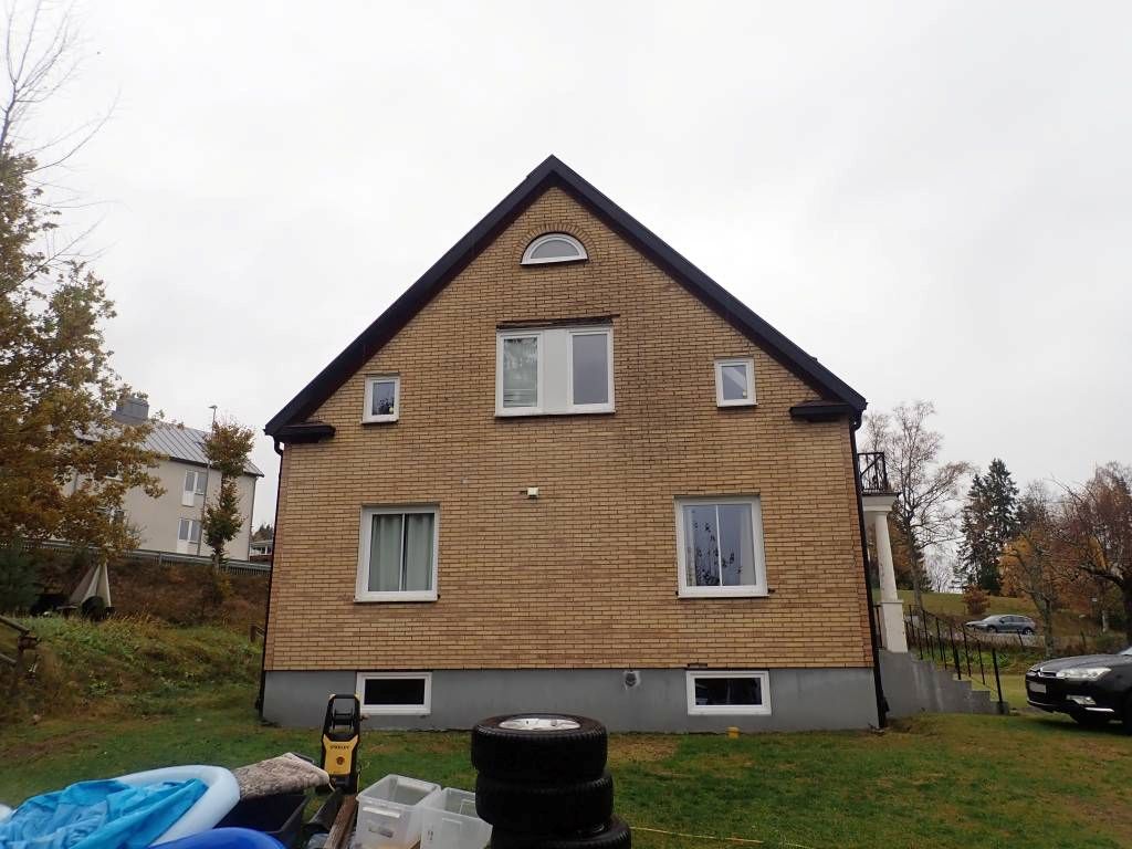 Fastighet bebyggd med ett bostadshus uppfört i 1,5-plan med hel källare. Relativt nyrenoverat (10 år) vitt kök. På tomten finns ingrävt förråd eller garage vilket inte är besiktigat. Villa i bra läge med stor tomt. Bostadsbyggnaden utgörs av en avstannad renovering. Lagas fasaden och renoveringen färdigställs med ett eventuellt byte av värmepumpen så fås ett trevligt och smidigt boende med nära till det mesta.