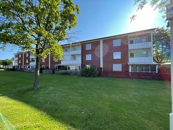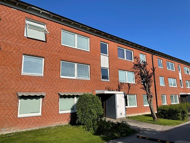 Bostadsrättslägenhet om 76,5 m² fördelat på 3 rum och kök, belägen på bottenplan. Inglasad balkong. Renoveringsbehov föreligger avseende ytskikt och köksinredning, läs mer i Beskrivning och värdering. Tvättstuga finns inom bostadsrättsföreningen. Allmänna kommunikationer samt samhällsservice finns inom gångavstånd. Närområdet består i huvudsak av flerbostadshus.