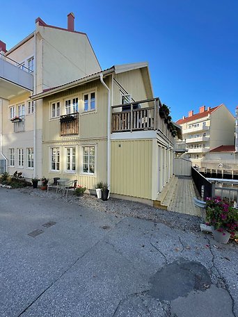Fastighet bebyggd med ett radhus i 2-plan, beläget strax utanför Strömstads centrum. Renoveringsbehov föreligger, läs mer i Beskrivning och värdering. Areauppgifterna är osäkra och bör mätas upp av köpare. Fiber finns. Förrådsbyggnad utanför entré med tillgång till ett förrådsutrymme. Närområdet består i huvudsak av flerbostadshus.