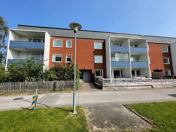 Bostadsrättslägenhet om 72 m² fördelat på 3 rum och kök, våning 2. Inglasad balkong i anslutning till vardagsrum. Lägenheten är i normalt skick, något eftersatt, underhållsbehov finns (vissa vitvaror saknas) - läs mer i Beskrivning och värdering. Gym finns som en gemensamhetsyta i föreningen. Ingen hiss. Allmänna kommunikationer finns i form av tågstation på cirka 2,3 kilometers avstånd och busshållplats på cirka 450 meters avstånd.