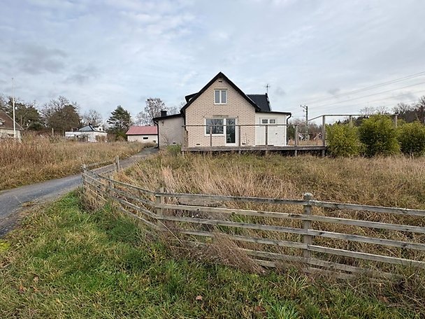 Villa 1 ½ -plan med mindre källarutrymme, beläget vid Gröningegården. Kommunalt vatten, troligen avstängt. Enskilt avlopp, bestående av trekammarbrunn samt infiltrationsbädd om 45 m². Anläggningen utförd år 2000, godkänd enligt uppgift från kommunen - vid frågor om vatten och avlopp hänvisas till kommunen. Vidbyggd altan om 50 m². Friliggande dubbelgarage med slagportar ca 75 m². Äldre lekstuga på tomten i trä. Renoveringsbehov såväl in - som utvändigt - läs mer i Beskrivning och värdering. Objektet är beläget i ett mindre område med villabebyggelse. Omgivningen domineras av landsbygdsmiljö med skogs- och jordbruksmark. Fastigheten angränsar till järnväg.