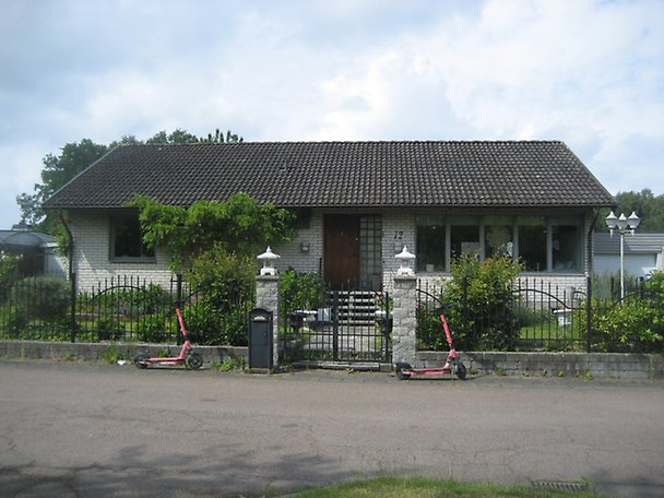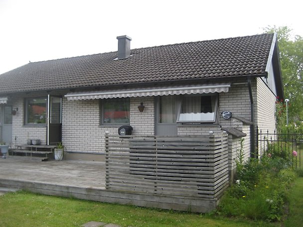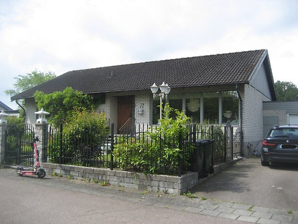 Fastighet bebyggd med ett bostadshus i 1-plan med källare. Normalt skick och standard, visst renoveringsbehov föreligger avseende badrum på bottenvåning samt ett visst moderniseringsbehov, läs mer i Beskrivning och värdering. Vidbyggt garage med elektrisk garageport samt källaringång. Vidbyggd altan trädäck med spabad. Fastigheten är även bebyggd med fristående attefallshus samt ett växthus. Närområdet utgörs av småhus, flerbostadshus samt grönområden.