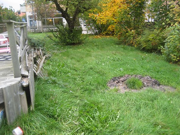 955 m², trädgårdstomt bestående av gräs, buskar och träd.