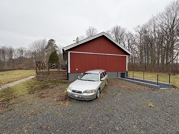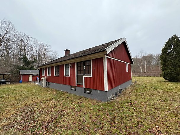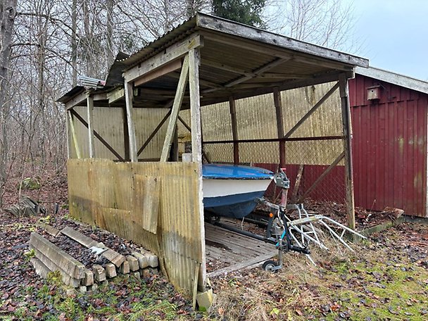Fastighet bebyggd med ett bostadshus i 1,5-plan med källare. Renoveringsbehov föreligger, läs mer i Beskrivning och värdering. Vidbyggd altan på framsida. Fastigheten är även bebyggd med ett fristående garage om ca 45 m² samt ett enklare båtskjul/carport bakom garage. Jordkällare med indragen el. Objektet har ett enskilt läge i landsbygdsmiljö där omgivningen utgörs av skogs- och jordbruksmark.