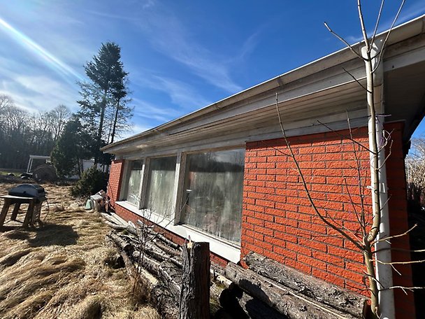 Fastighet bebyggd på mellantomt med ett bostadshus i 1-plan med källare. Invändig renovering är påbörjad, nästan samtliga ytskikt är utrivna. Bostadshusets yttre skick bedöms som något eftersatt. Stort renoveringsbehov föreligger, läs mer i Beskrivning och beskrivning. Objektet är lantligt beläget, närområdet utgörs i huvudsak av bostadsbebyggelse och lantbruksmark.