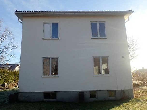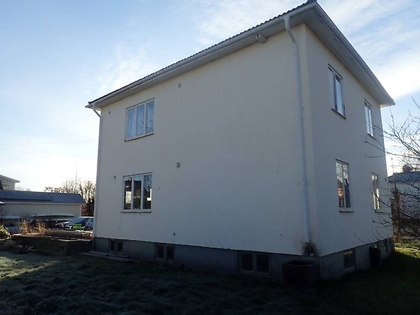 Fastighet bebyggd på hörntomt med ett bostadhus i 2-plan med källare. Pågående renovering av källare och övervåning, i övrigt har bostadshuset renoveringsbehov såväl in- som utvändigt, läs mer i Beskrivning och värdering. Fastigheten är bebyggd med en mindre fristående byggnad/vedbod. Fiber draget till fasad. Objektet har ett centralt läge, omgivningen utgörs av villabebyggelse.