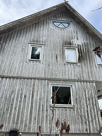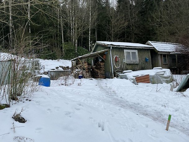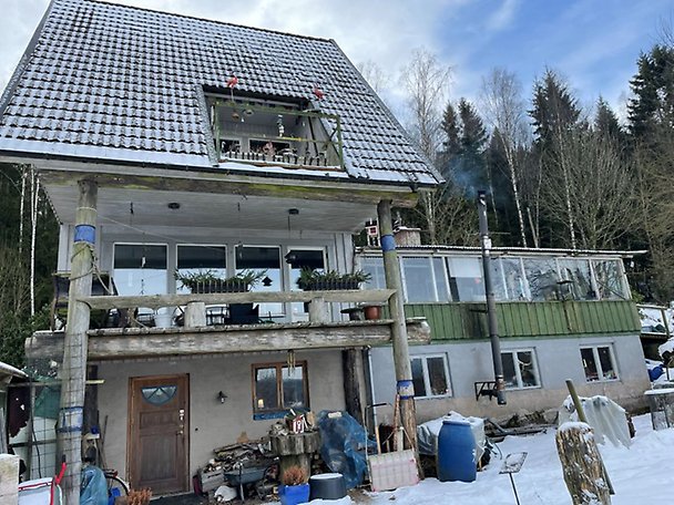 Fastighet bebyggd med ett bostadshus i 2-plan med källare. Bostadshuset är i behov av större renovering- och underhåll, läs mer i Beskrivning och värdering. Tillbyggnad påbörjad år 2002, slutbesked/slutbevis saknas enligt kommunen. Enskilt vatten och avlopp, tillsynsärende pågår. Vid frågor gällande vatten/avlopp samt bygglov hänvisas till kommunen. Fastigheten är även bebyggd med fristående garage samt förrådsbyggnad i nedsatt skick.