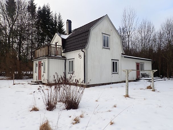 Fastighet bebyggd med ett bostadshus i 1,5-plan. Tillbyggt år 1976. Bostadshuset har stått kallställt i ca 1-3 år och har renoveringsbehov, läs mer i Beskrivning och värdering. Vattnet skall enligt uppgift vara urkopplat, kommunen har angett en kostnad om totalt 33 150 kr för inkoppling, vid frågor gällande inkoppling hänvisas till kommunen. Fiber finns. Balkong samt vidbyggt trädäck. Fastigheten är även bebyggd med komplementsbyggnader i form av en bod innehållande snickarbod/slaktplats samt hundrum, delvis raserat tak. Större byggnad är i ett enkelt skick med plats för en bil. Objektet har ett fritt läge utmed riksväg 152, närområdet utgörs av småhusfastigheter, industrifastigheter samt skogsområden.