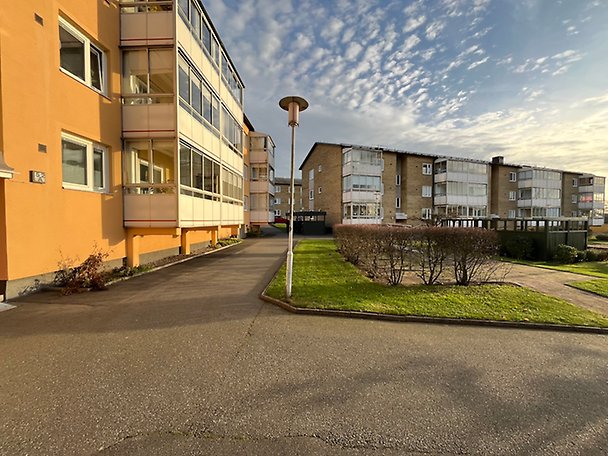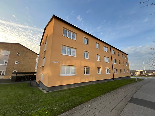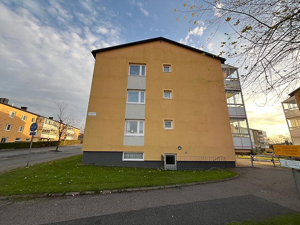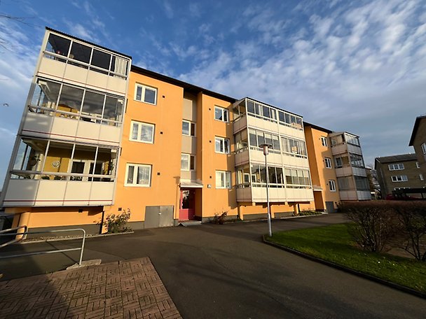 Bostadsrättslägenhet om totalt 73,5 m² fördelat på 3 rum och kök, belägen på våning 3 av 3. Hiss finns ej. Inglasad balkong med tillträde via det större sovrummet. Lägenheten håller generellt ett normalt till gott skick och standard, badrum av äldre datum och renoveringsbehov föreligger, läs mer i Beskrivning och värdering. Tillhörande lägenhetsförråd i källare enligt uppgift. Gemensamma tvättstugor finns inom bostadsrättsföreningen. Objektet är beläget inom tätorten, närområdet utgörs huvudsakligen av flerbostadshus. Allmänna kommunikationer i form av hållplats för lokalbuss finns inom gångavstånd liksom service, butiker samt skola och förskola.