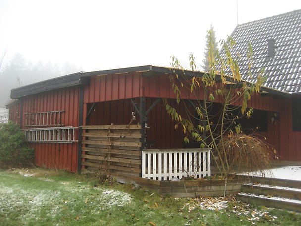 Fastighet på hörntomt bebyggd med ett bostadhus i 1,5-plan. Vidbyggt garage med förråd. Trädäck, med viss del under tak, i sydvästläge. Bostadshuset bedöms vara i normalt skick och standard. Garagebyggnad kan behöva översyn, läs mer i Beskrivning och värdering. Omgivningen utgörs av liknande småhusfastigheter samt skogsområde.