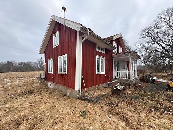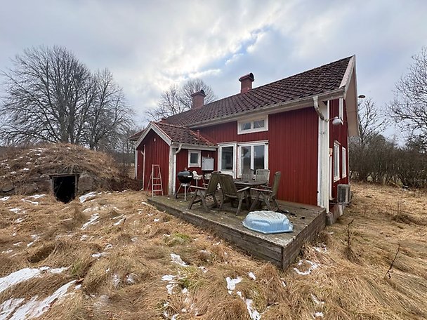 Fastighet bebyggd med ett bostadshus i 1,5-plan. Upprustningsbehov finns såväl in- som utvändigt, läs mer i Beskrivning och värdering. Uteplats med trätrall om ca 12 m² i nedsatt skick. Fastigheten har enskilt vatten och avlopp. Avloppsanläggningen består av trekammarbrunn och infiltrationsbädd, godkänd år 2022 enligt uppgift från kommunen - vid frågor hänvisas till kommunen. Fastigheten är även bebyggd med en friliggande gäststuga samt en äldre jordkällare om ca 10 m². Objektet är beläget i landsbygdsmiljö, närområdet utgörs av jordbruksmark och glesbebyggelse.