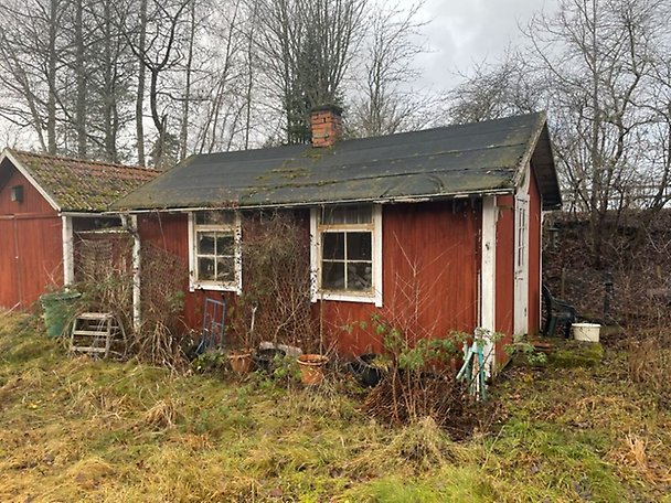 Fastighet bebyggd med ett mindre bostadshus i 1,5-plan. Vidbyggd veranda/altan under tak. Bostadshuset är i ett nedsatt skick såväl in- som utvändigt och är i behov av sanering och renovering, läs mer i Beskrivning och värdering. Fastigheten är även bebyggd med förrådsbyggnader i nedsatt skick. Objektet är lantligt beläget, närområdet består av småhusbebyggelse och åkermark.