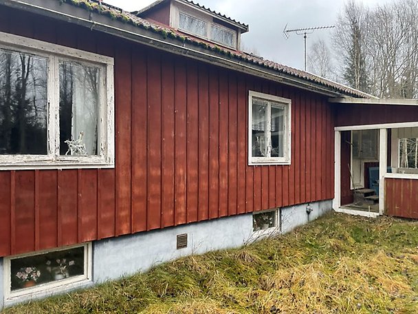Fastighet bebyggd med ett bostadshus i 1-plan med källare. Vattenburen värme, uppvärmning via pellets. Enskilt vatten och avlopp, enligt uppgift är avloppet en 3-kammarbrunn. Uppgifter saknas hos kommunen avseende avloppet, vid frågor hänvisas till kommunen. Bostadshuset är i behov av renovering såväl in- som utvändigt, läs mer i Beskrivning och värdering. Vidbyggd uteplats under tak. Fastigheten är även bebyggd med en friliggande förrådsbyggnad i enklare utförande. Fastigheten har ett lantligt läge, ca 10 km sydväst om Töreboda. Närområdet utgörs i huvudsak av skog samt glesbebyggelse.