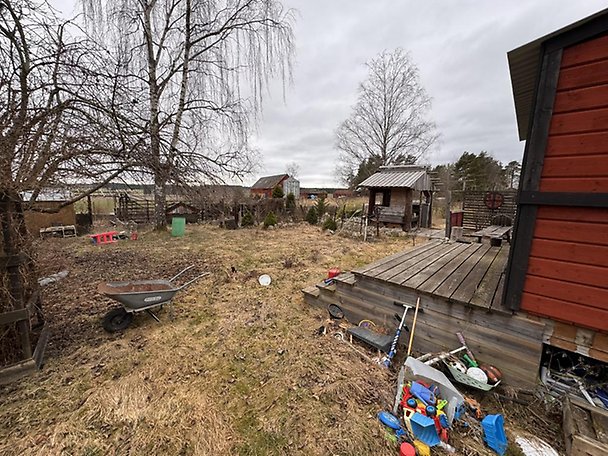 Tomt om 1 293 m² vars obebyggda delar utgörs av trädgård.