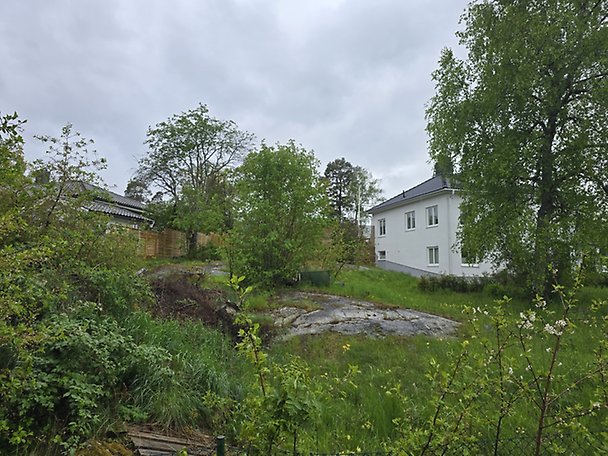 Relativt plan tomt om 718 m² där detaljplanen medger en byggnadsarea om 110 m²