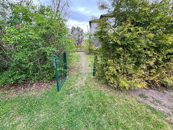 Tomt om 1 697 m² vars obebyggda delar utgörs av trädgård med gräsmatta, buskar och träd