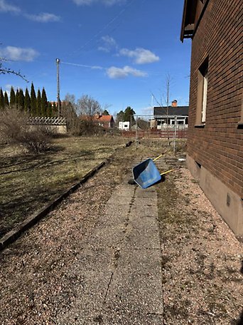 Observera att det finns ett beslut från Bygg- och miljönämnden att komplementbyggnaden, som är i ett förfallet skick, belägen vid fastighetens nordöstra hörn skall rivas.