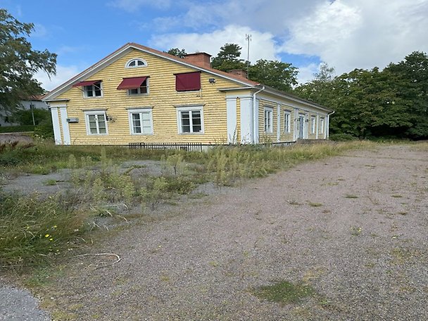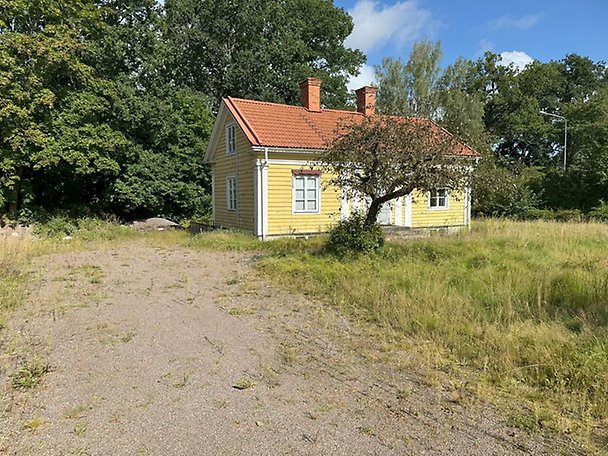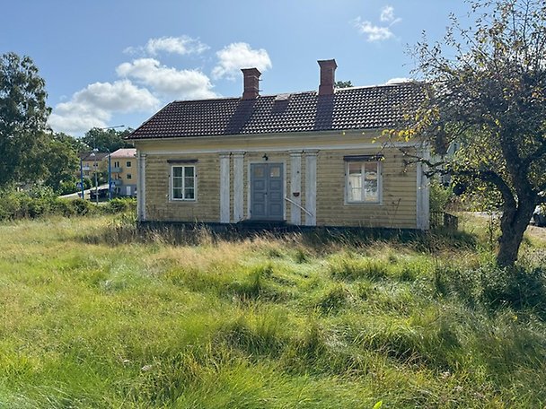Tomställd fastighet belägen på hörntomt invid genomfart med en huvudbyggnad samt två flygelbyggnader. Huvudbyggnaden utgörs av ett hus i 1,5-plan med källare och en lokalarea om 319 m². I källarvåningen finns 3 takskjutportar och 2 garageplatser. Inbyggd balkong. Flygelbyggnaderna är om 100 m² lokalyta vardera, med källare. Vattenburen värme i samtliga byggnader, troligen är värmesystemet sprucket. Tidigare användning, typ HVB-hem eller likvärdigt. Läs mer i Beskrivning och värdering