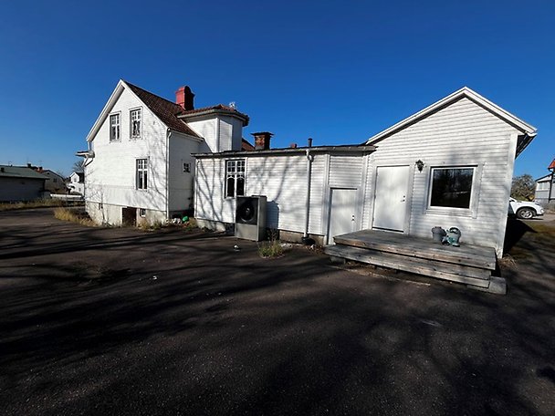 Villa i 1,5 plan med källare och en boyta/ biutrymme om cirka 150 m² respektive 110 m². 7 rum och 2 kök. Kakelugnar finns. Trädäck på baksidan. Byggnaden har nttjats som två bostadslägenheter. Det finns även ett mindre växthus. Fastigheten är belägen i mittenläge i småhusområde.