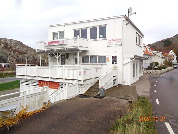 Restaurang- och bostadsfastighet i 2-plan med källare. Plan 1 utgörs av restauranglokal om ca 100 m² samt vidbyggd uteservering med havsutsikt. Plan 2 utgörs av en bostadslägenhet om ca 100 m² fördelat på 4 rum och kök samt två tillhörande balkonger med havsutsikt. Källardelen om ca 90 m² utgörs av förråd och wc-rum. Objektet är beläget i Skärhamn, i ett relativt havsnära läge. Orten är livligt frekeventerad sommartid.