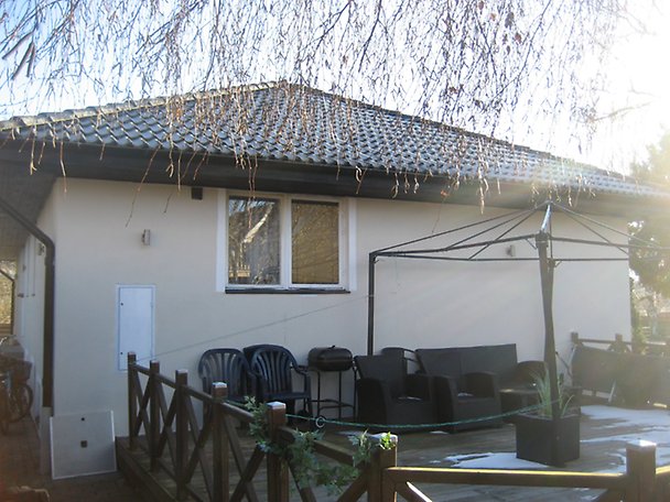 Suterränghus i 2 plan, beläget i området Husie i Malmö. Utvändigt bedöms fastigheten ha normalt skick och standard. Visst underhållsbehov invändigt. I anslutning till byggnadens västra del finns trädäck och vid den östra sidan finns inglasat uterum samt balkong.