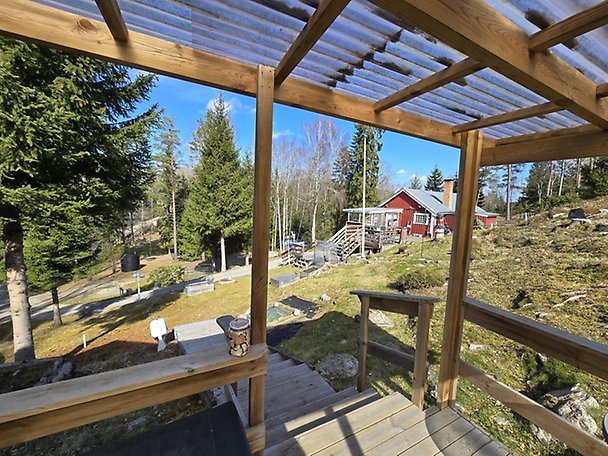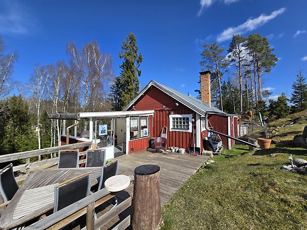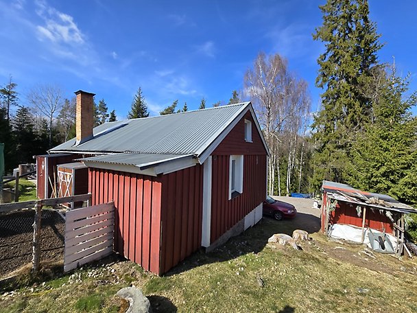 Fritidshus om 64 m² fördelat på 2 rum och kök samt en gäststuga med 2 rum belägen i Huddinge med gångavstånd till hållplats, 4,5 km till skola, 1 mil till livsmedelsbutik och affärscentrum.
