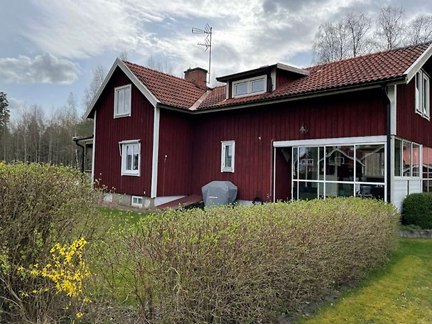Fastighet bebyggd med ett bostadshus i 1,5-plan med källare. Uppvärmning via bergvärme, solceller från år 2022. Fastigheten är även bebyggd med ett gästhus om ca 30 m². Isolerat dubbelgarage. Enskilt vatten, kommunalt avlopp. Läs mer om objektet i bifogad Beskrivning och värdering. Närområdet utgörs av villabebyggelse, idrottsområden samt skogspartier.