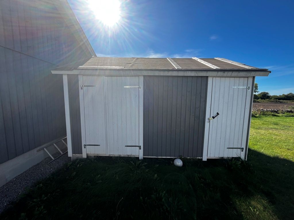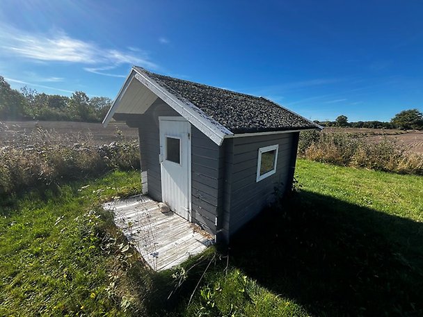 Det finns även förrådsbyggnad på plintar med träfasad och papptak samt även en lekstuga på plintar med träfasad och papptak.