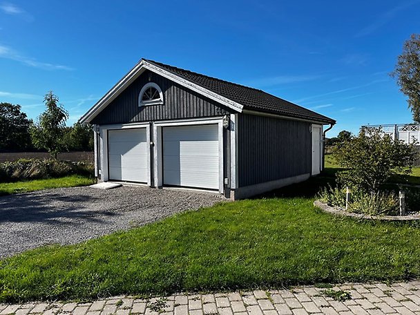 Fastighet bebyggd med ett bostadshus uppfört i 1,5-plan. På tomten finns fristående isolerat garage med plats för två bilar med elektroniska garageportar. Garaget har gjuten platt, träfasad och betongtakpannor. El och belysning finns.